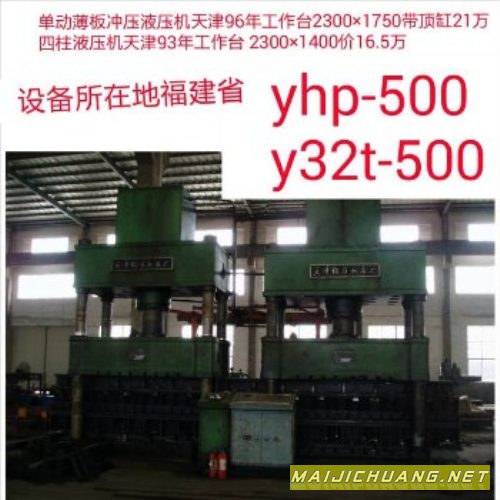 16.5万yhb-500单动薄板冲压液压机合肥93年工作台 2200×1500带顶缸 yhp-500单动薄板冲压液压机天津96年工作台2300×1750带顶缸21万 y32t-500四柱液压机天津93年工作台 2300×1400价16.5万 (设备所在地福建省)